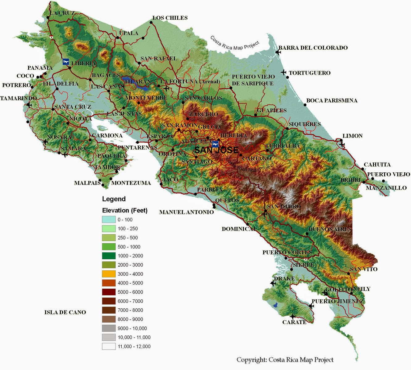 Costa Rica Map With Cities.